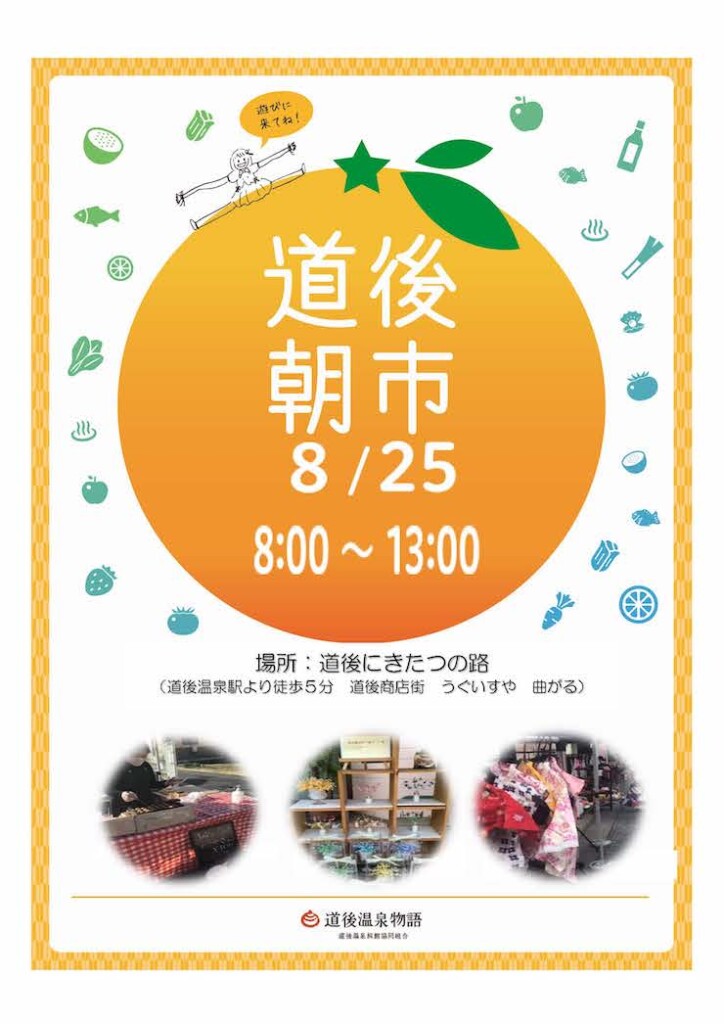 8月25日(日)、道後にきたつの路で「湯あがり朝市」が開催されます